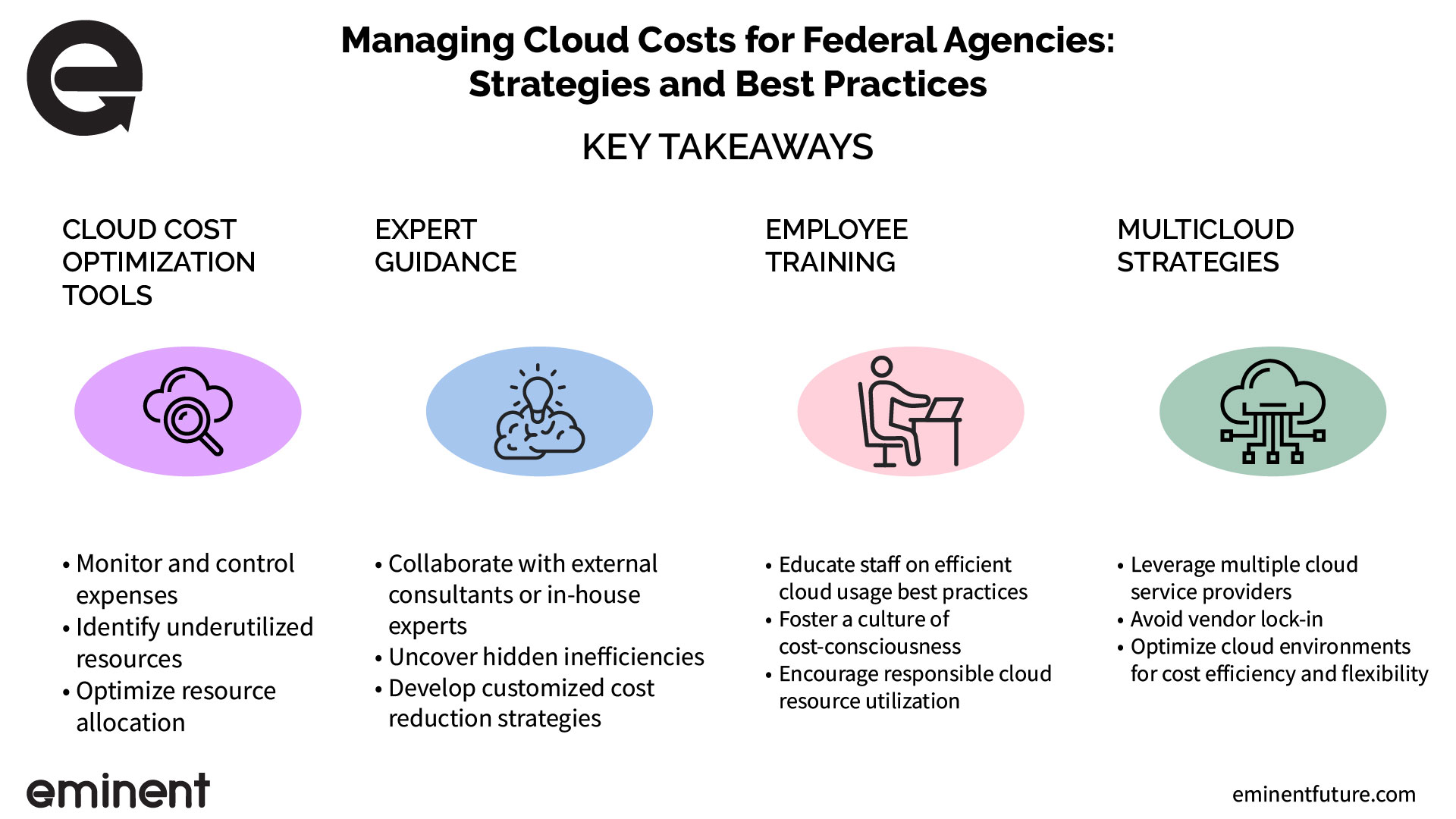 Effective cloud cost management is essential for federal agencies to optimize their IT budgets, support mission-critical projects, and demonstrate the return on investment of their cloud initiatives. By understanding the factors contributing to escalating cloud costs and adopting proactive strategies, such as leveraging cloud cost optimization tools, engaging experts, providing employee training, and embracing multicloud strategies, federal IT leaders can successfully navigate the complexities of cloud spending.